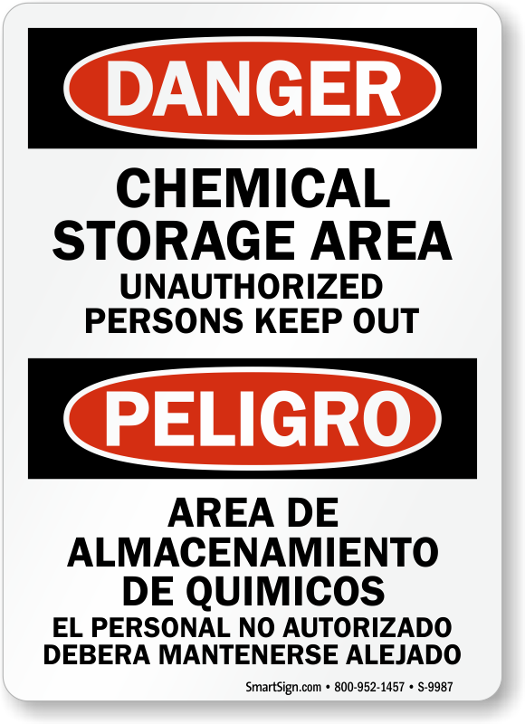 Keep everyone safe from danger and inform them that the area is for chemical storage, by placing bilingual chemical storage area sign.