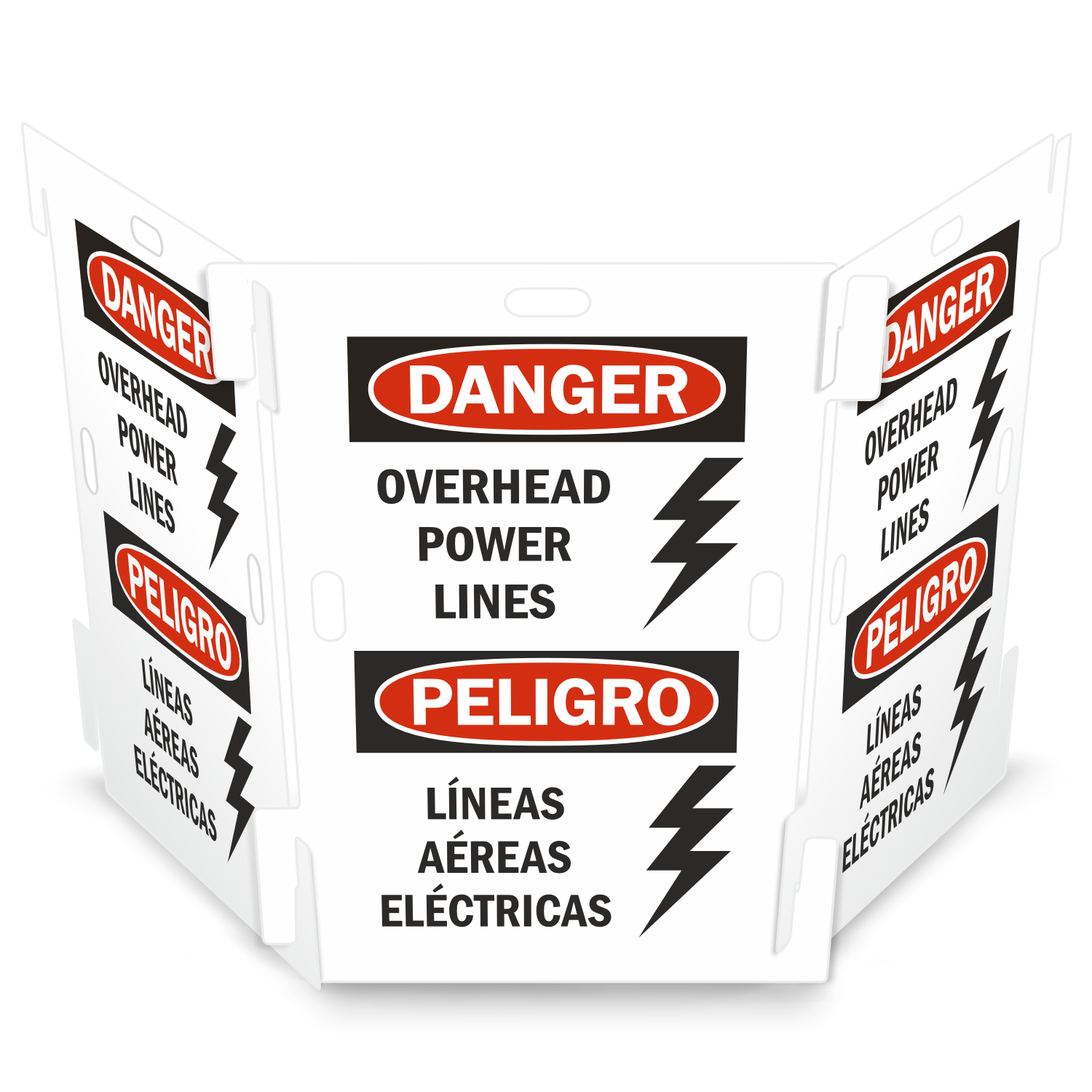 Interlocking Barricade Sign: Bilingual, Danger: Overhead Power Lines, Peligro: Lineas Aereas Electricas SF-1449