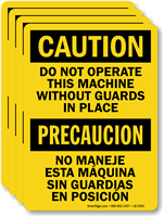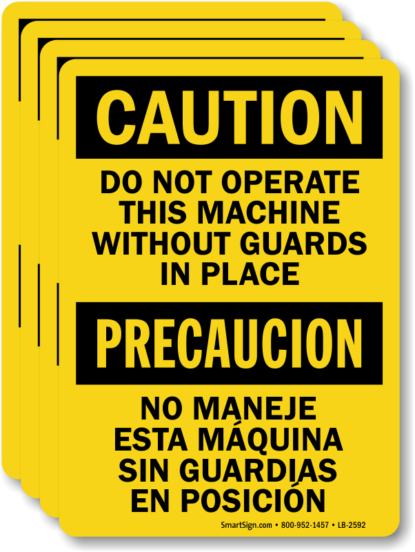 While posting an important safety message, consider your workers who understand only Spanish. Use our bold, Bilingual OSHA Caution Label to remind workers to use guards while operating a machine.