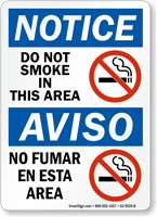 Bilingual OSHA Notice Sign strikes the right chord with Spanish audience too and instructs them not to smoke.