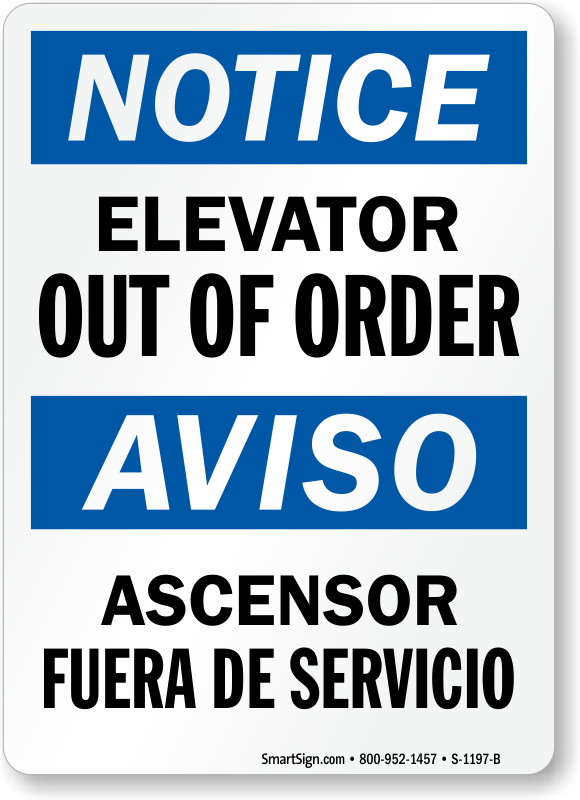 A universal sign understood by all enhances productivity in workplace. Post this Bilingual OSHA notice sign to notify everyone when elevator is out of order.