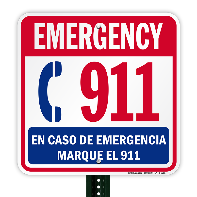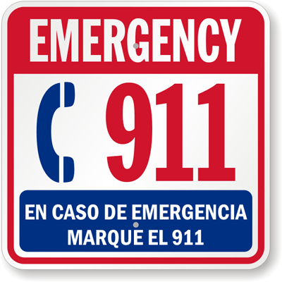 Bilingual Dial 911 Sign: Emergency 911 En Caso De Emergencia Marque El 911 K-9705 Learn More...