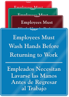 ShowCaseâ„¢ Bilingual Restroom Signs: Employees Must Wash Hands Before Returning To Work (Bilingual)