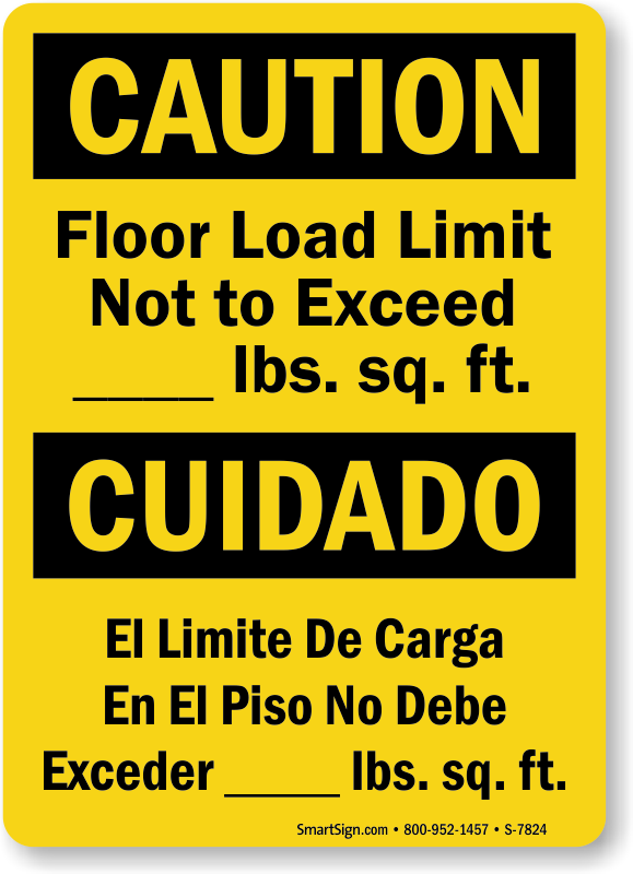 Specify safe floor load limit with a bilingual OSHA Caution Sign in English and Spanish.