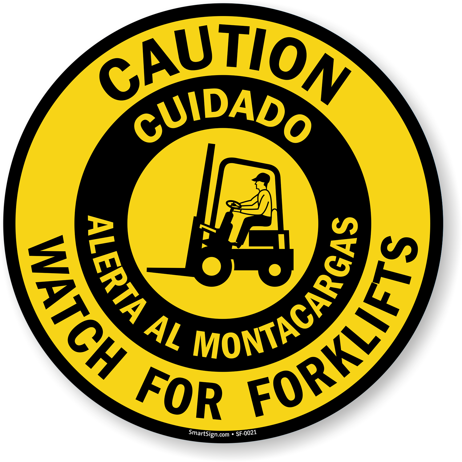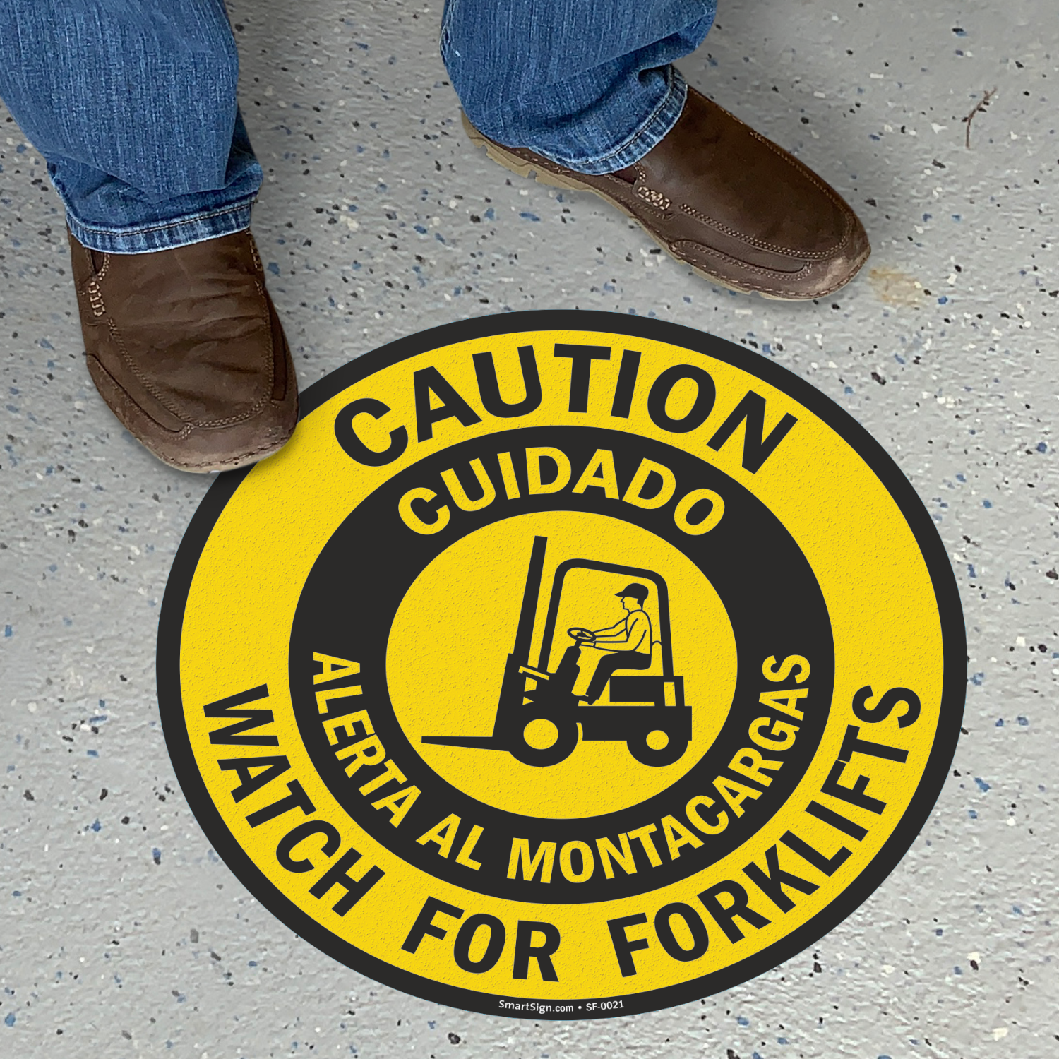 Warn pedestrians of forklift traffic in the area. A floor message offers heightened visibility. Overlaid with pebble or grit coated laminate, floor sign increases surface friction that prevents skids or falls.