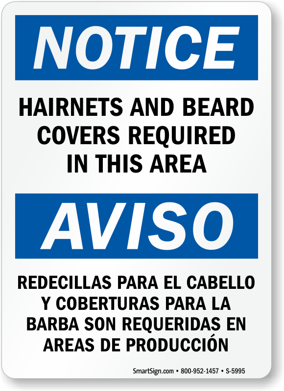 To ensure that hygiene is maintained on your property, post a Notice sign stating that Hairnets And Beard Covers Required In This Area.