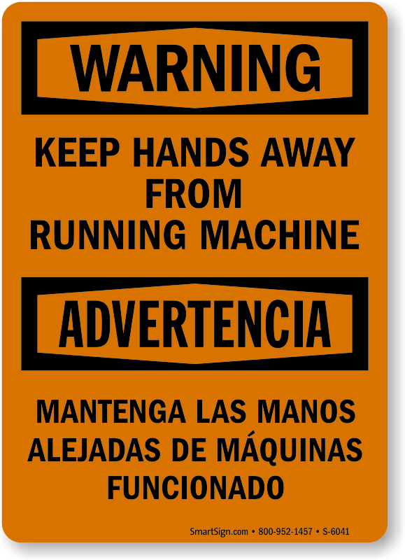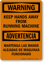 A reminder always helps prevent carelessness. Use a Keep Hands Away From Running Machine Bilingual OSHA Warning Sign and avert accidents.