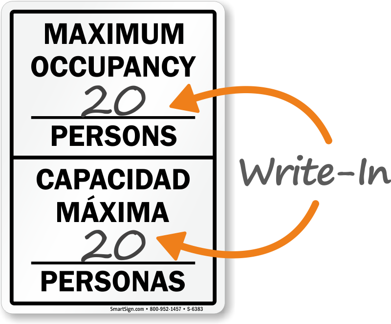 Communicate the maximum occupancy of an area through this bilingual sign. It has a blank space to write the number of persons allowed. Message in English and Spanish sure reaches a larger audience.