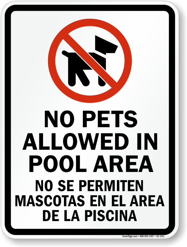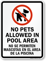 Bilingual No Pets Sign: No Pets Allowed in Pool Area/No Se Permiten Mascotas En El Area De La Piscina with Symbol S2-1411 Learn More...