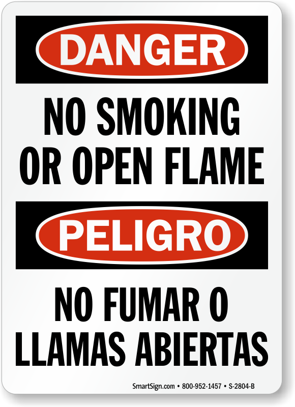 This Bilingual OSHA danger sign promotes cultural sensitivity and includes Hispanic workforce into the safety program of your facility. Post it to prohibit smoking or open flame in the area.