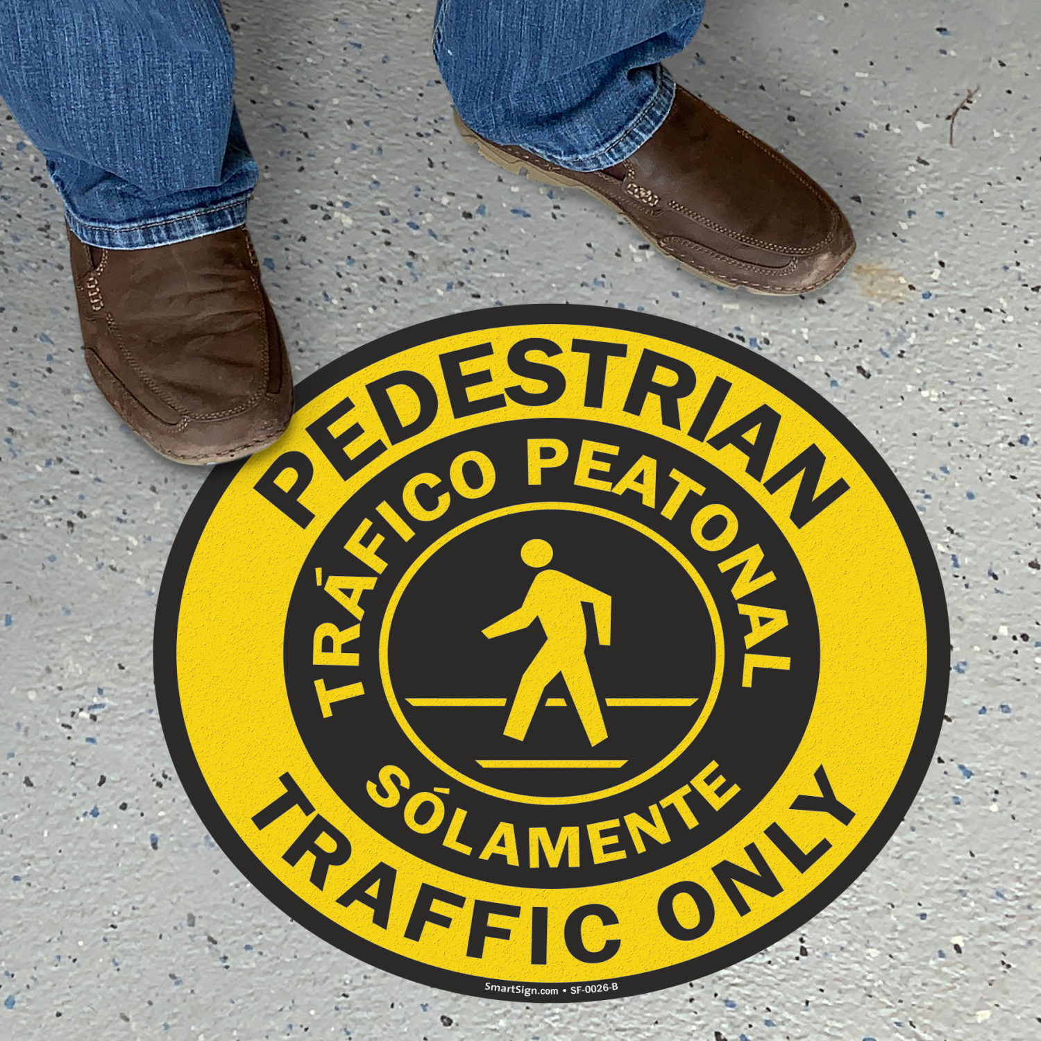 Effective communication of important messages is central to the safety of employees in your facility. Allow the inflow of pedestrian traffic only by using this 17in. Diameter SlipSafeâ„¢ Bilingual Floor Sign with graphic.