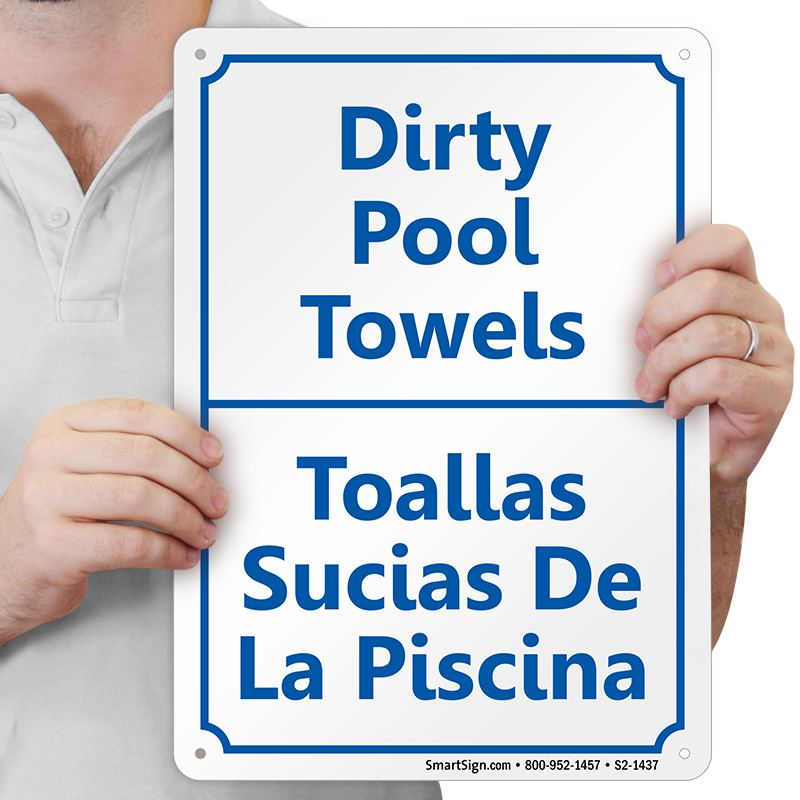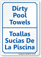 Mark the storage area assigned for used/dirty towels at your pool area. Use this Bilingual Pool Area Sign to ensure your message is understood by a wider audience.