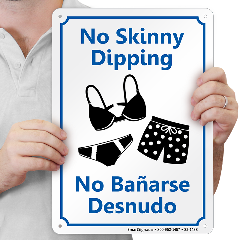 Bilingual Pool Area Sign: No Skinny Dipping/No Banarse Desnudo with Graphics S2-1438