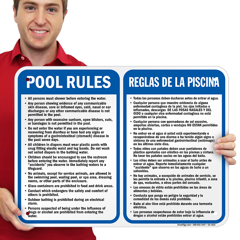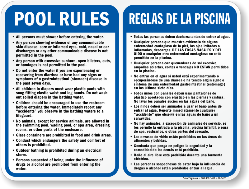 Bilingual Pool Sign: Pool Rules/Reglas De La Piscina S2-1425 Learn More...