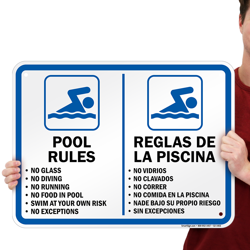 Bilingual Pool Sign: Swimming Pool Rules/Reglas De La Piscina with Graphic S2-1403 Learn More...