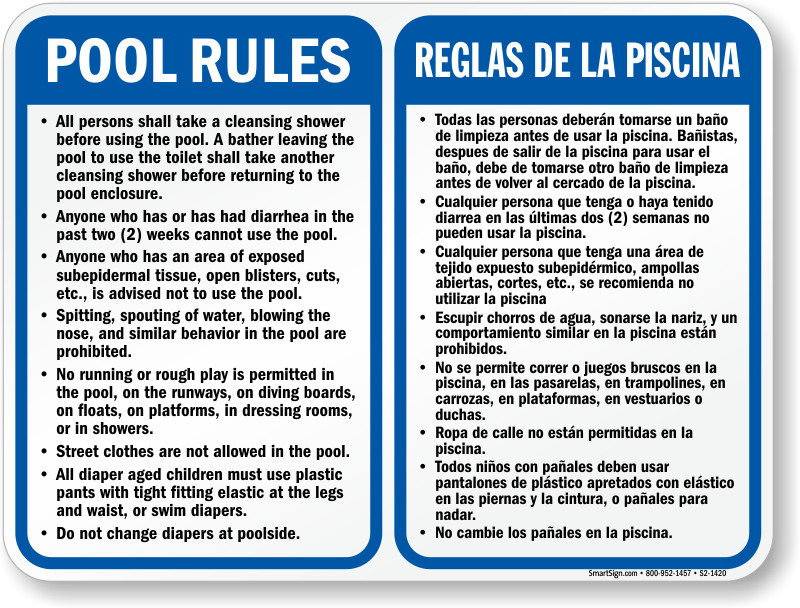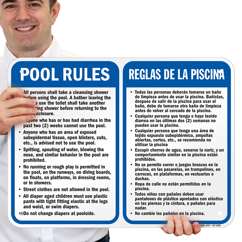 Bilingual Pool Sign: Pool Rules/Reglas De La Piscina S2-1420 Learn More...
