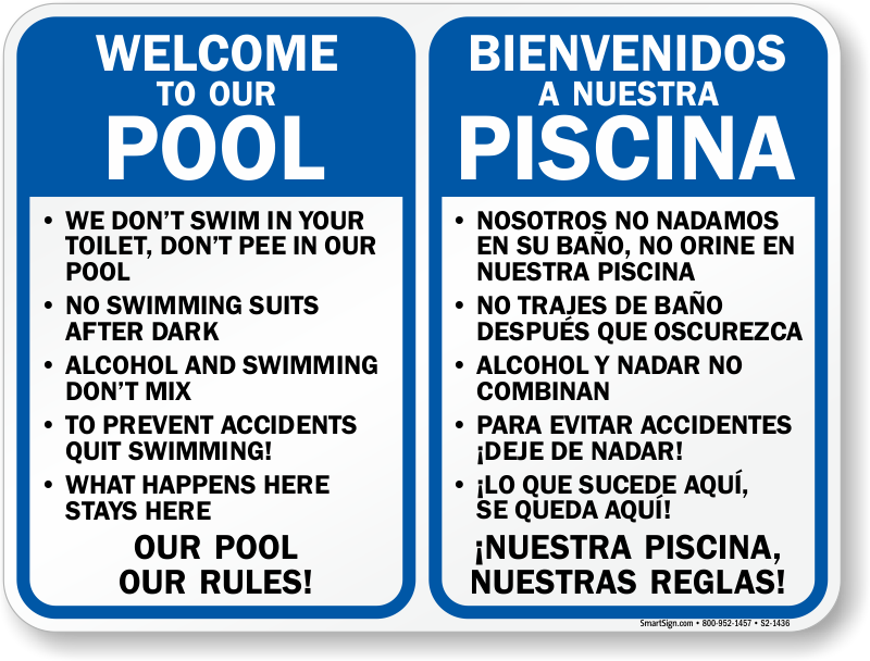 Bilingual Pool Sign: Welcome to our Pool, Pool Rules/Bienvenidos A Nuestra Piscina, Reglas De La Piscina S2-1436 Learn More...