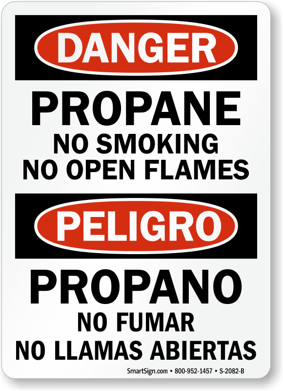 Mark the Danger zone with this bilingual OSHA Danger sign for everyone to understand the message and prohibit smoking or open flames in the area.