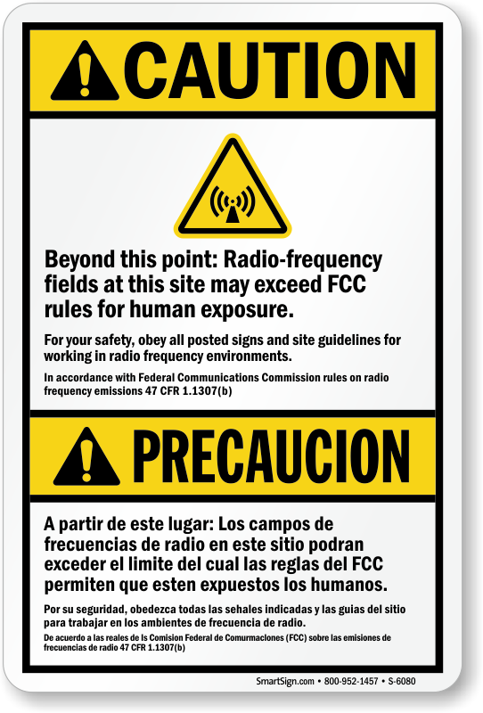 When the work area is at potentially dangerous radio-frequency levels, post bilingual signs to inform workers so they can be aware of the risk.