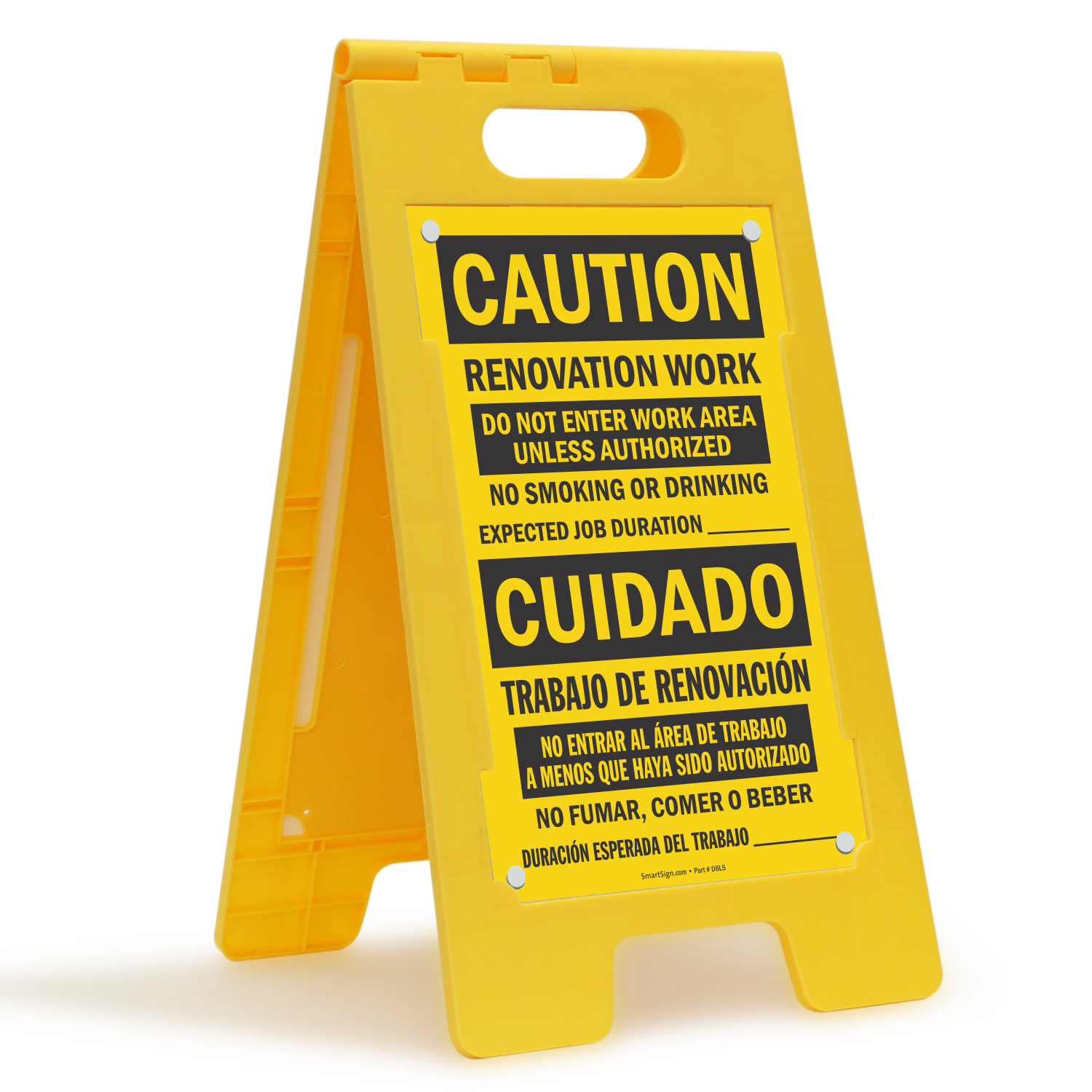 Making renovations to your space? Be confident that both English and Spanish speakers understand that they need clearance to enter. Portable floor sign can be repositioned as work progresses.