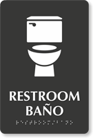 Bilingual TactileTouchâ„¢ Braille Sign: Restroom / Bano SB-1033 Learn More...