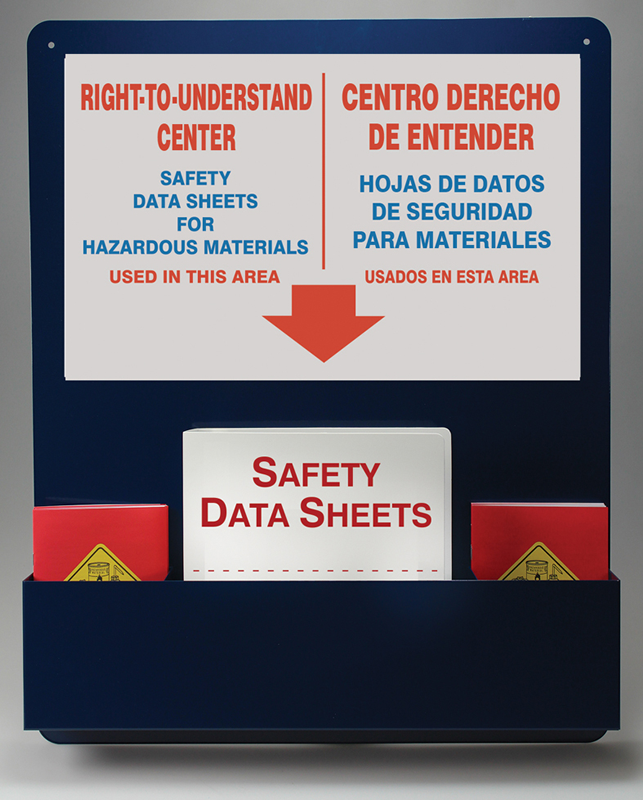The Bilingual Right-To-Understand Center provides a central location to keep all SDS information and training manuals. Perfect for any company with both English and Spanish speakers.