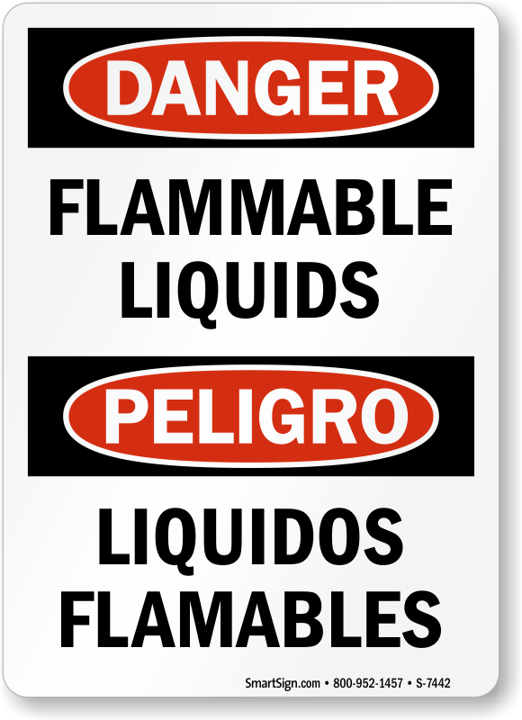This bilingual Flammable Liquids sign educates about possible dangers in English and Spanish.