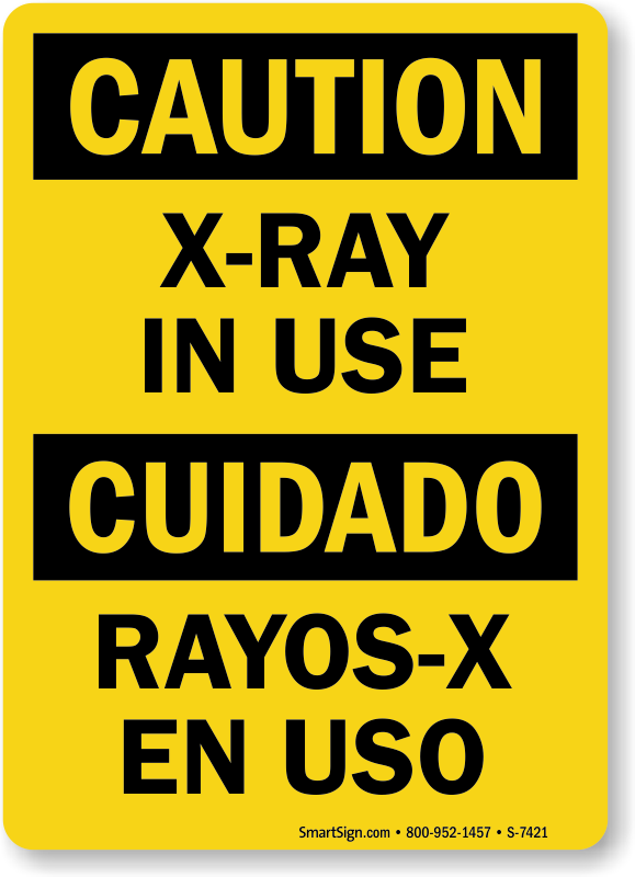 A bilingual X-Ray sign protects people in English and Spanish.