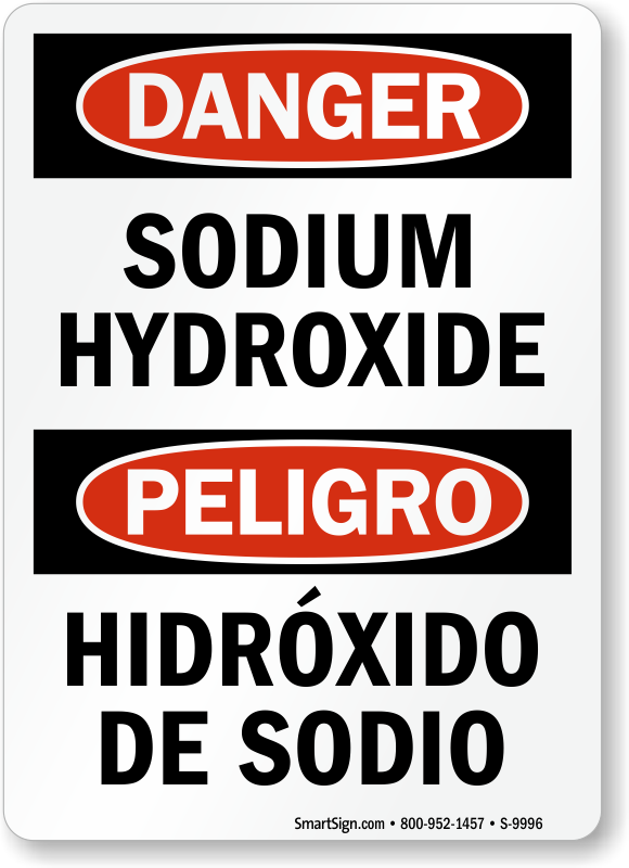 If your workers are exposed to Sodium Hydroxide, it is best to post a Danger sign. This Bilingual OSHA Danger sign alarms people around the chemical so that they can be careful.
