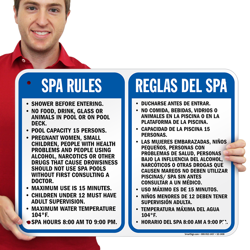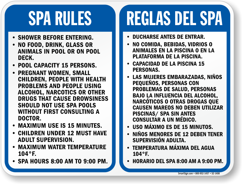 Bilingual Spa Sign: Spa Rules and Timings/Reglas Del Spa S2-1408 Learn More...