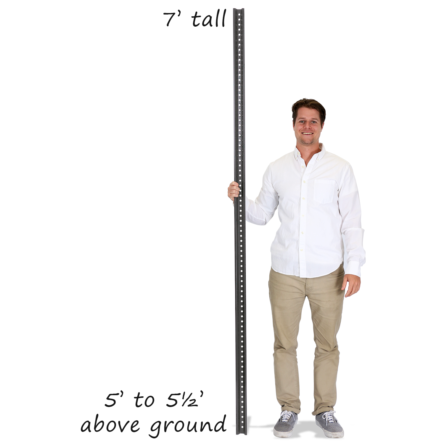 7' tall, black U-channel posts, coated in baked enamel for extra durability.