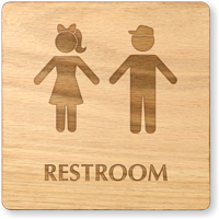 Mark restrooms for little ones with this fun sign. Get this unisex restroom sign (with a boy and girl symbol).