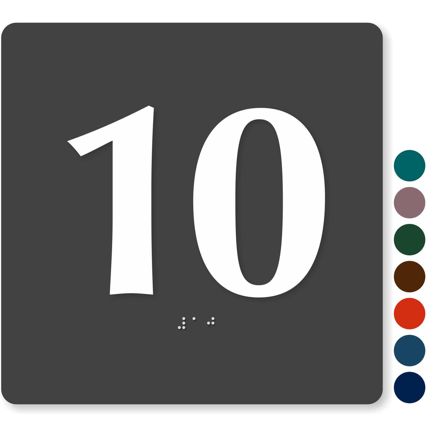 8" x 8" TactileTouchâ„¢ Braille Sign: Sign With Number. "10" SE-2683-10