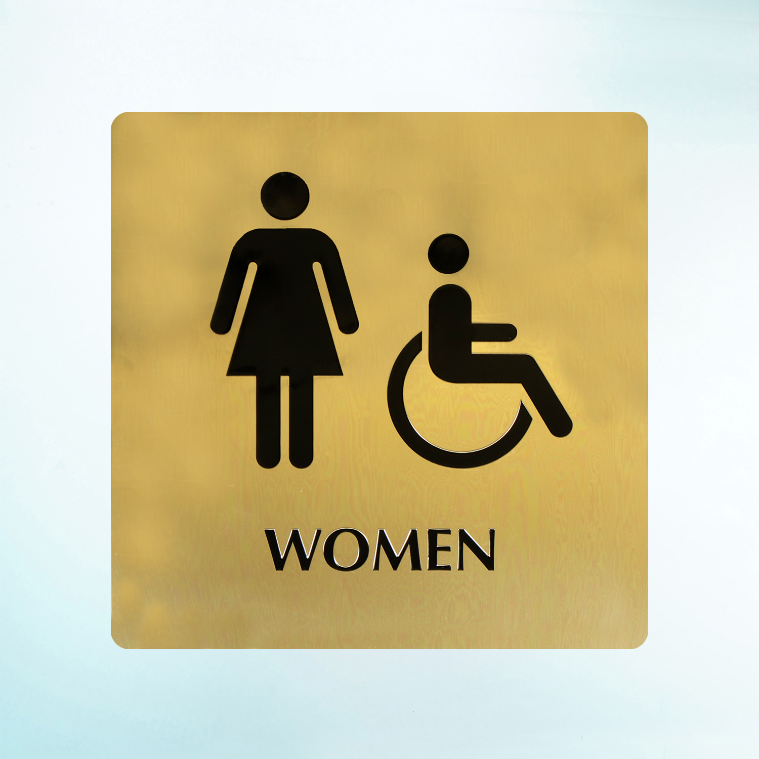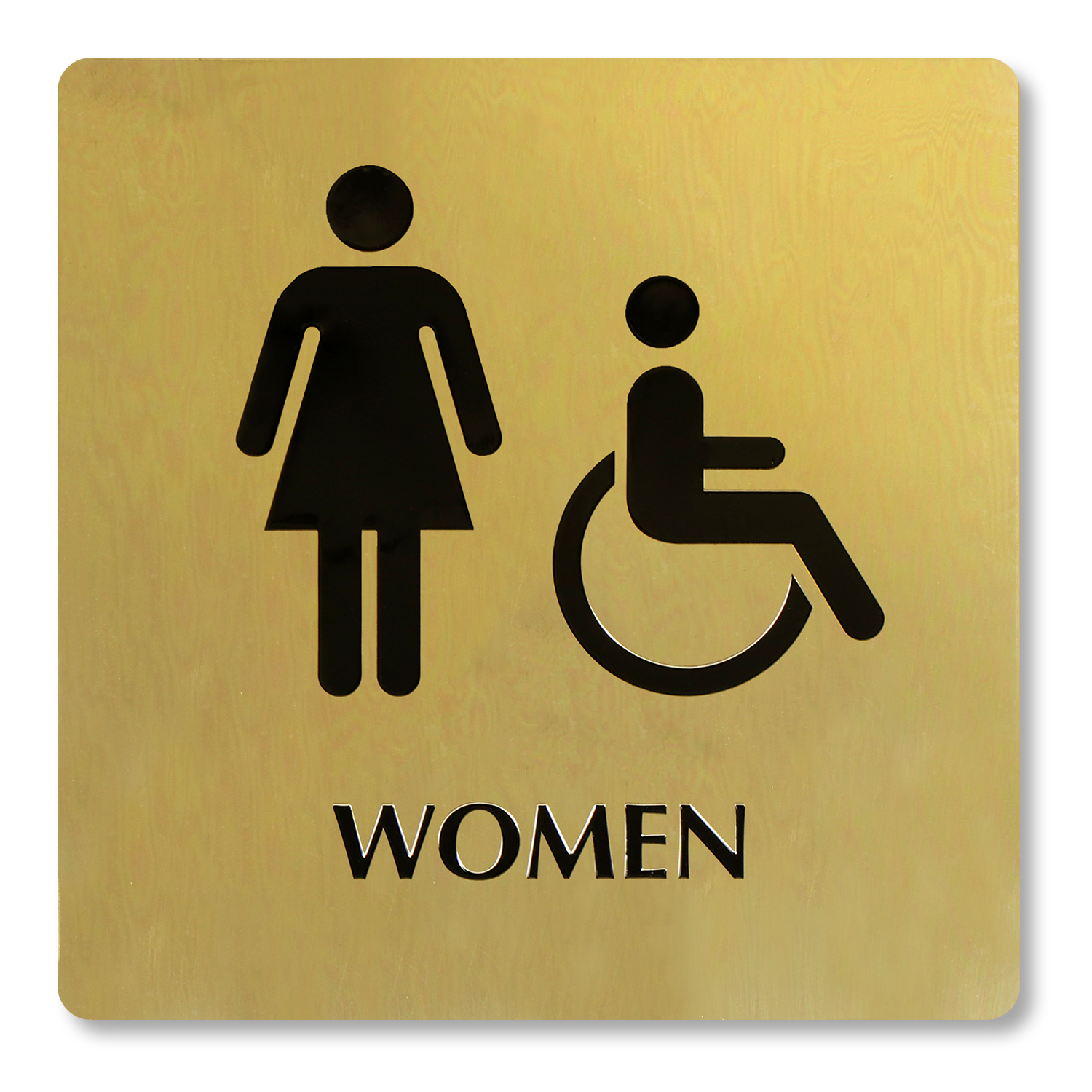 Brass Women or Girls Restroom Sign: Women (with Female and Accessible Pictograms) SE-7560