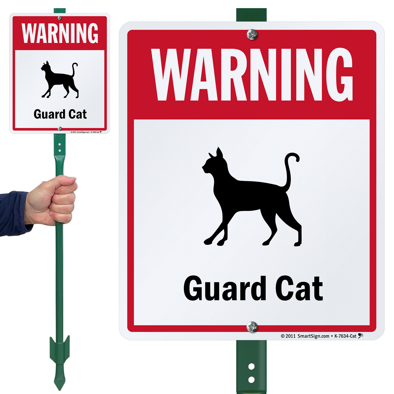 Size: 12" x 9" Material Type: Heavy Duty Aluminum Sign & 3' Tall Stake Verified PurchaseGuard Cat Warning signage