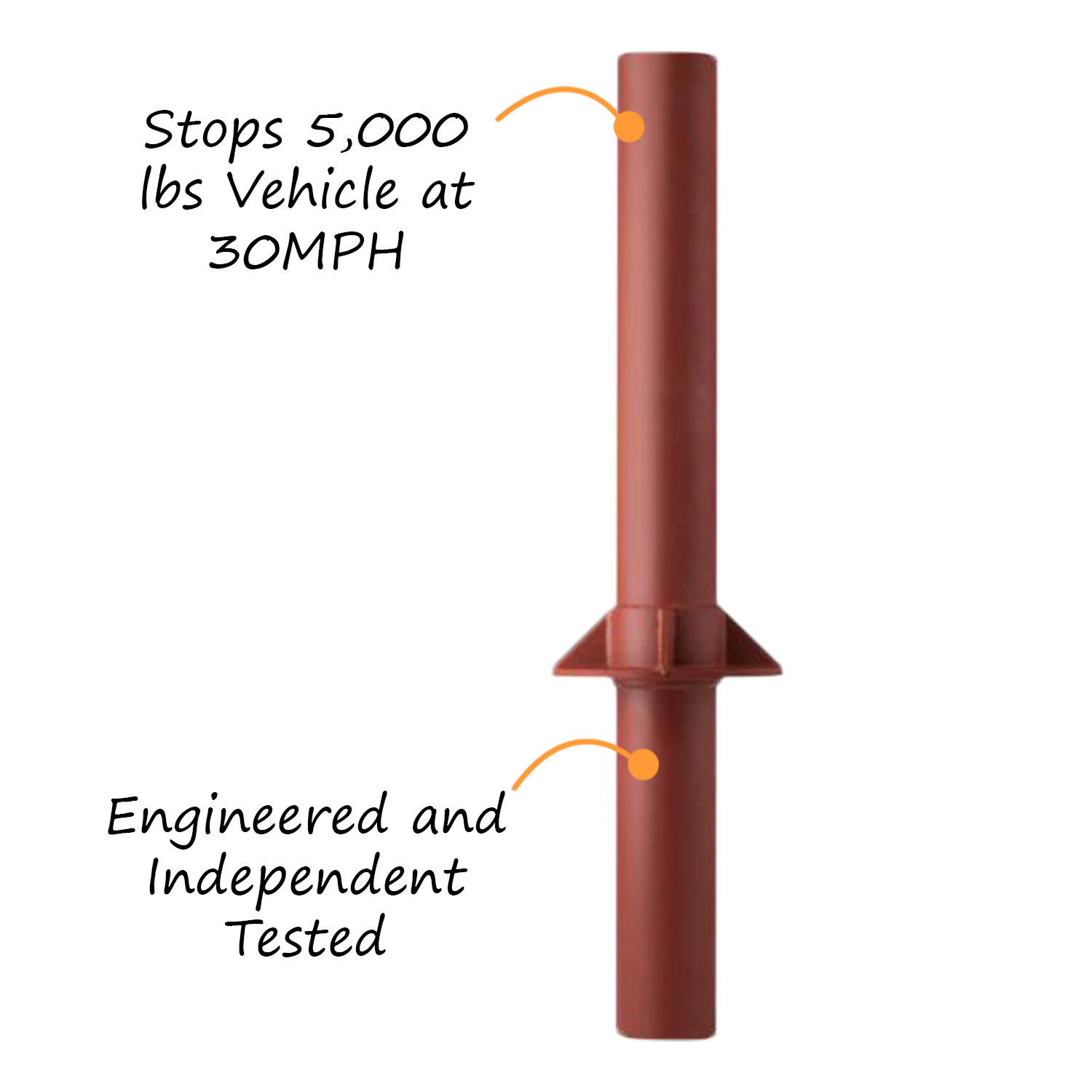 Engineered and independently tested to meet the ASTM C40 P1 Standard and designed to meet the ASTM F2656 storefront requirements, these 6" security bollard barriers are designed for bi-directional stopping capability meaning they can be hit from any angle and keep its strength.