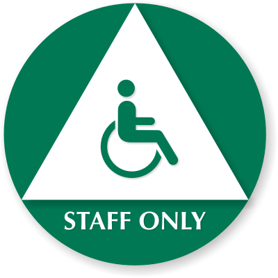 California Unisex ADA Staff Restroom Sign: Staff Only With Unisex Accessible Pictogram (White Triangle On Green Circle) SE-1921 Learn More...