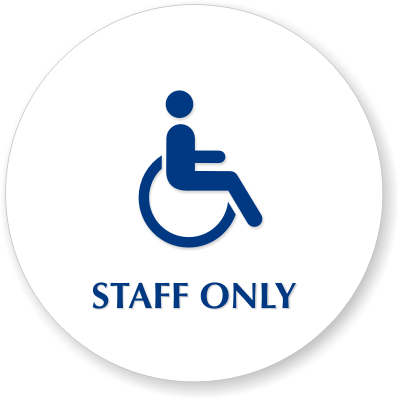 - Wheelchair symbol indicates that the staff restroom is accessible.