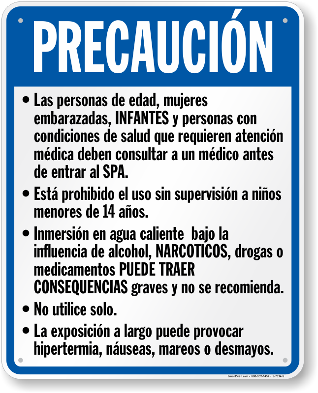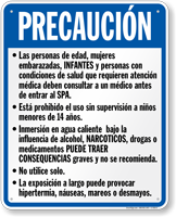 California Spanish Spa Rules Sign: Precaucion, Reglas Del Spa S-7634-S Learn More...