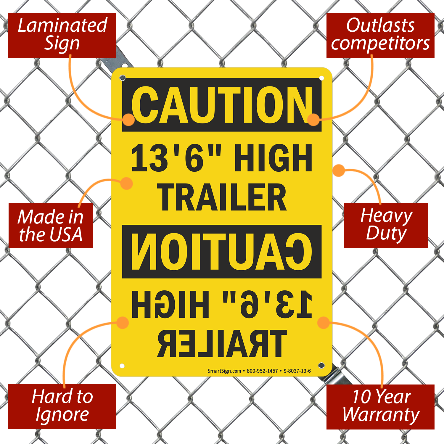 Use this OSHA trailer sign to communicate that only trailers of height up to 12' can find entry/exit from your facility. Readable also in the mirror, the sign is great to avoid accidents.