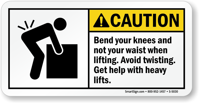 This ANSI Caution sign asks workers to exercise caution while lifting heavy objects. Display this message and teach workers the correct way of lifting heavy material.