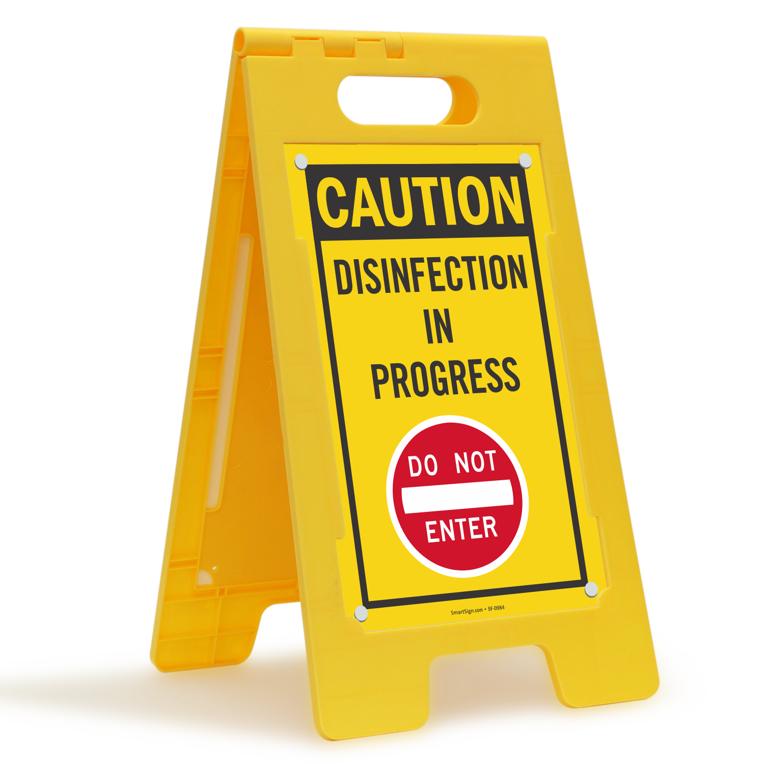 Place this 'Disinfection In Progress' sign right where the process is undergoing in your facility.