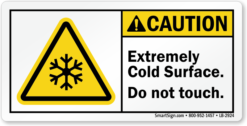 ANSI Caution Label: Extremely Cold Surface, Do Not Touch with Frostbite Hazard Symbol LB-2924