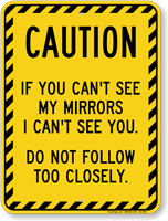 Horse Trailer Sign: Caution - If You Can't See My Mirrors I Can't See You. Do Not Follow Too Closely.