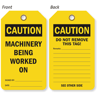 2-Sided OSHA Caution Safety Tag: Machinery Being Worked On Do Not Remove This Tag TG-0611
