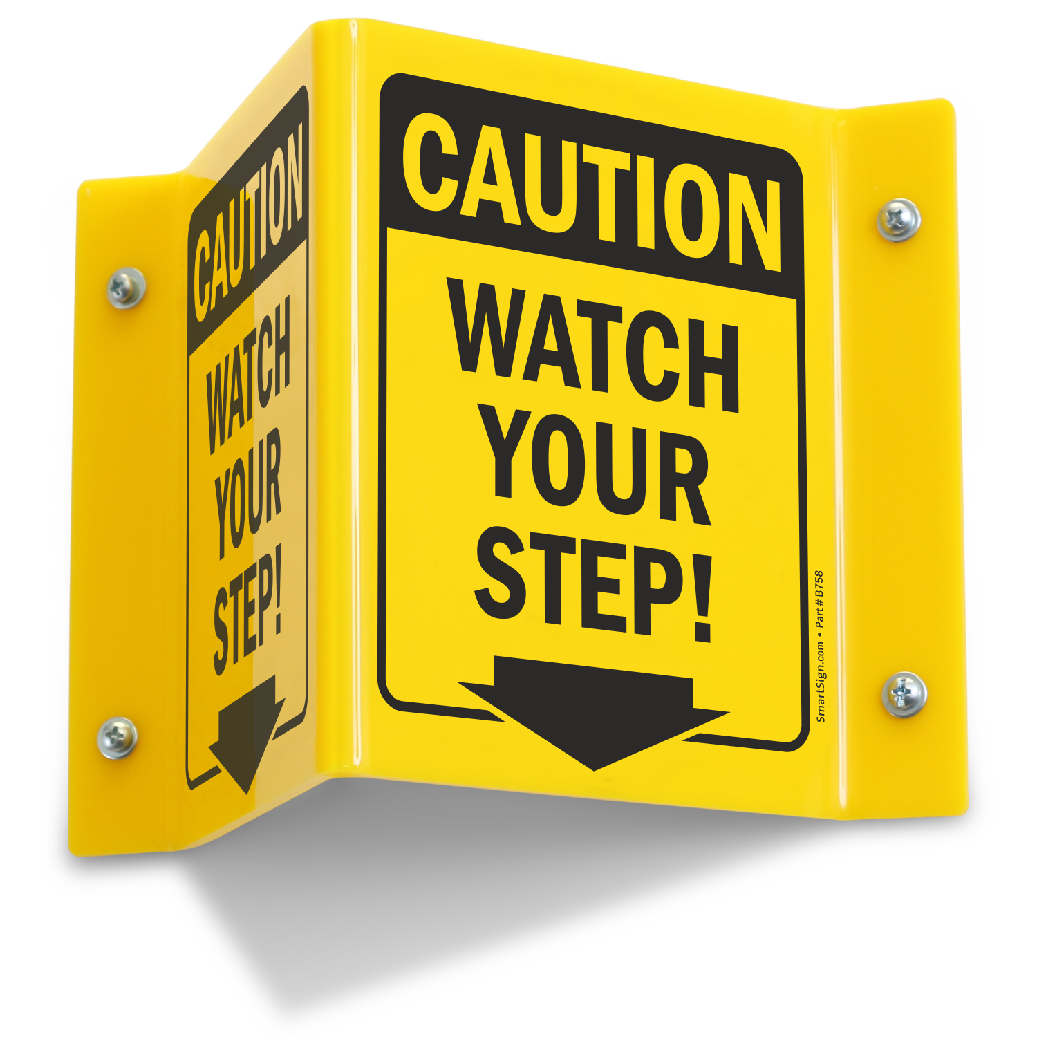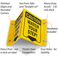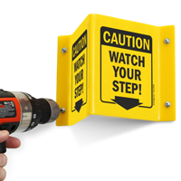 2-Sided Projecting Caution Sign: Watch Your Step! (with Down Arrow) Learn More...