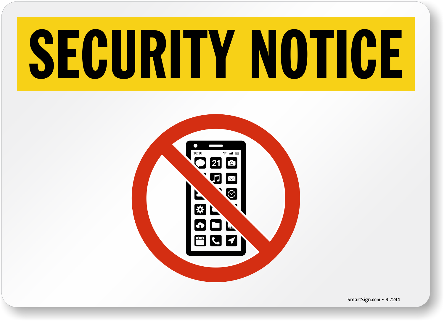 Security Sign: Security Notice : No Cell Phone Graphic S-7244