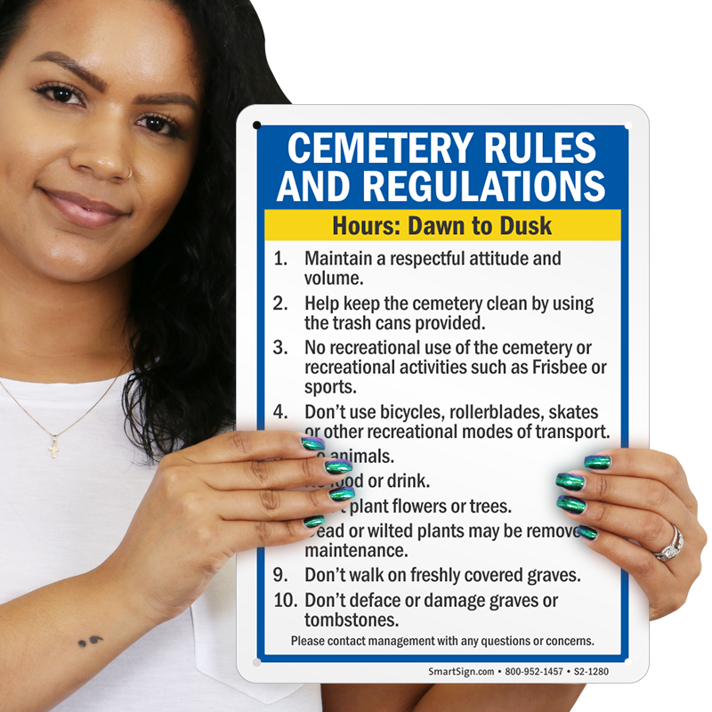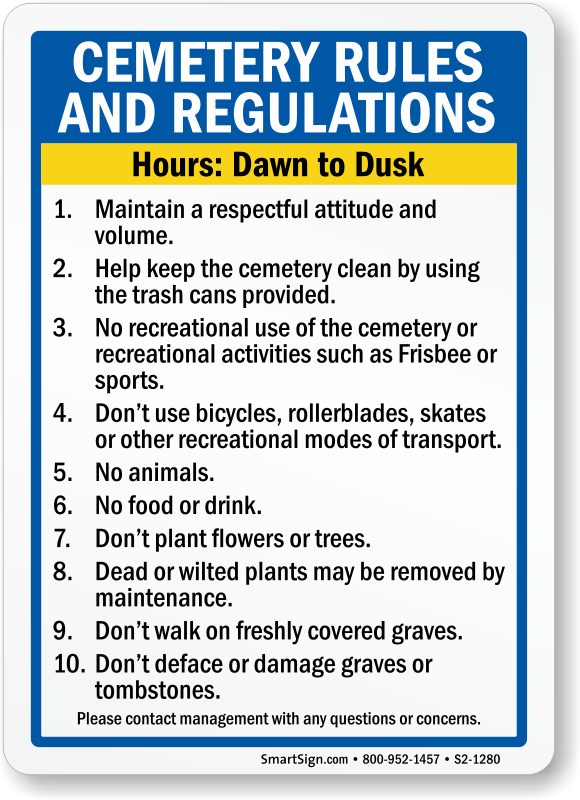 Inform visitors about the do's and don’ts of the cemetery, with this rules sign.