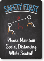Chalkboard Style Signs: Safety First: Please Maintain Social Distancing While Seated S2-4751
