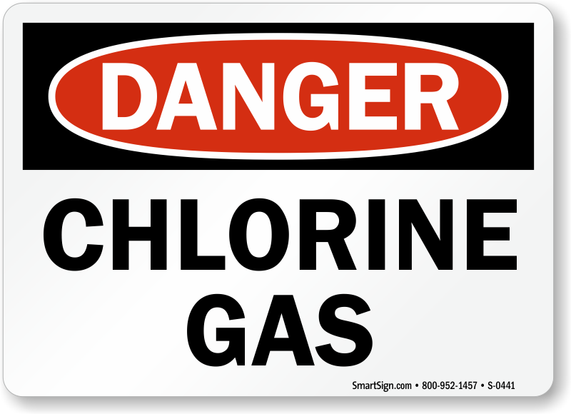 Keep chemical-handling areas safe. Use a "chlorine gas" sign. A sign helps